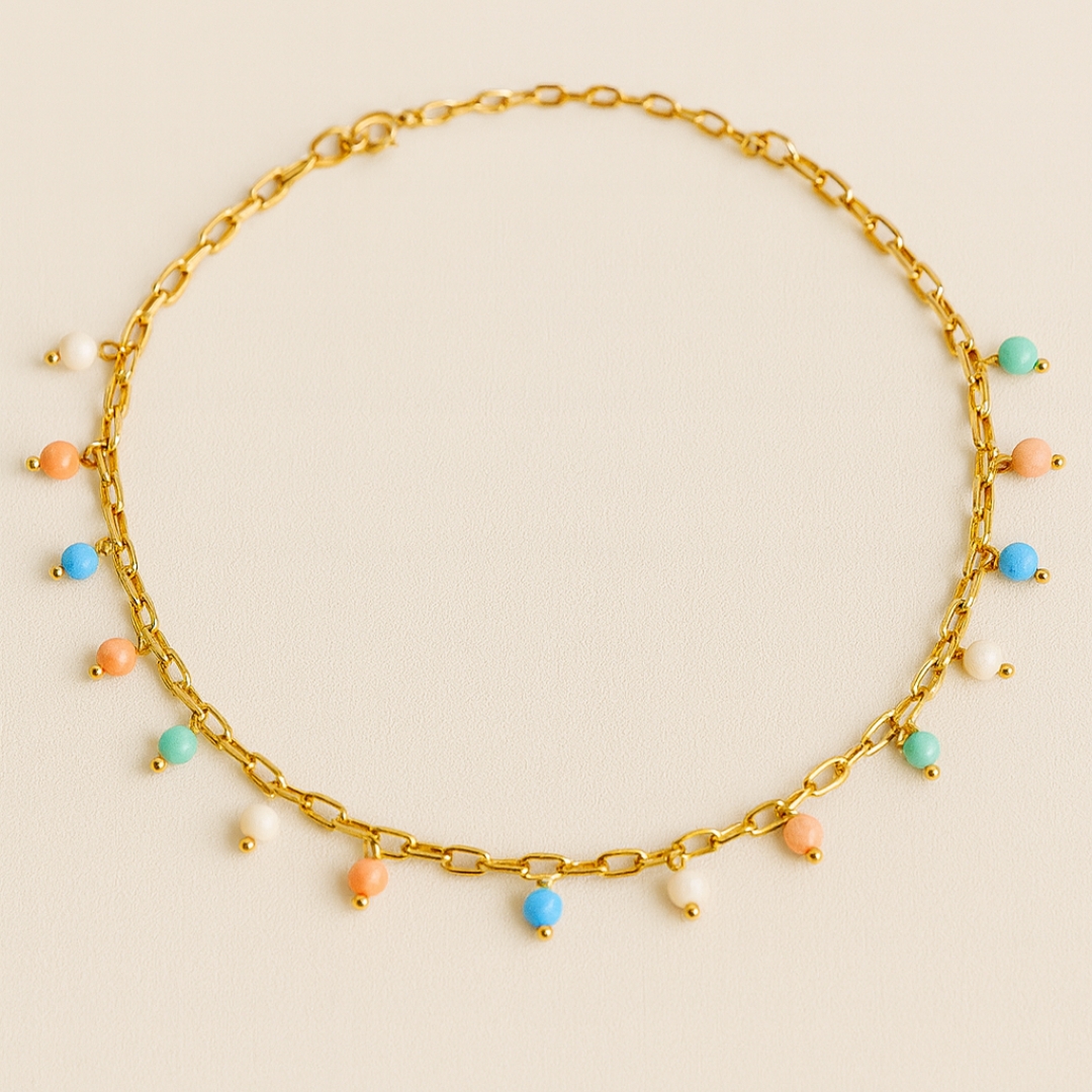 Minimalist Gold Necklace with Colorful Beads – Youthful and Elegant