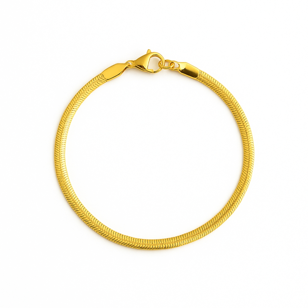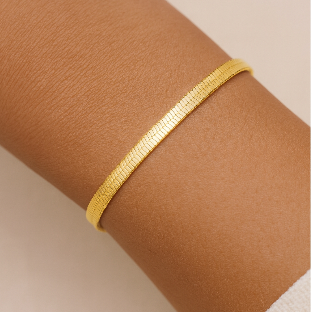 This elegant gold herringbone bracelet is a timeless piece that combines luxury and minimalism. Its sleek flat-chain design shines beautifully on its own or layered with other bracelets.