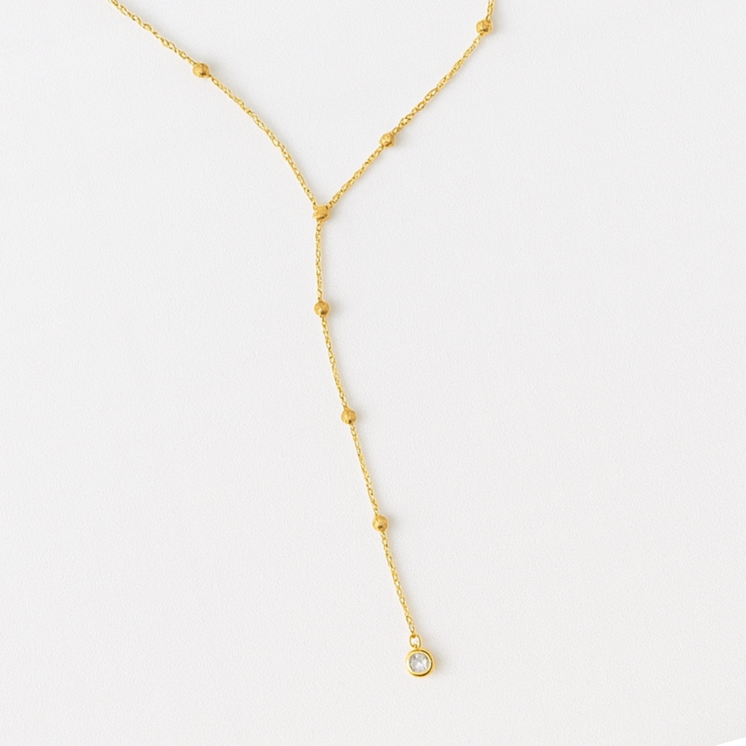 This delicate gold-plated stainless steel lariat necklace features a modern Y-drop design that beautifully elongates the neckline and blends effortlessly with any outfit from everyday casual to elevated chic.