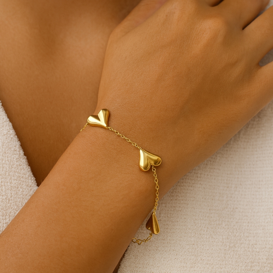 The three golden hearts symbolize love in all its forms: the friendship that lifts you, the family that embraces you, or the self-love that strengthens you every day. Its delicate and adjustable design makes it the perfect accessory to wear daily or to gift on special occasions.