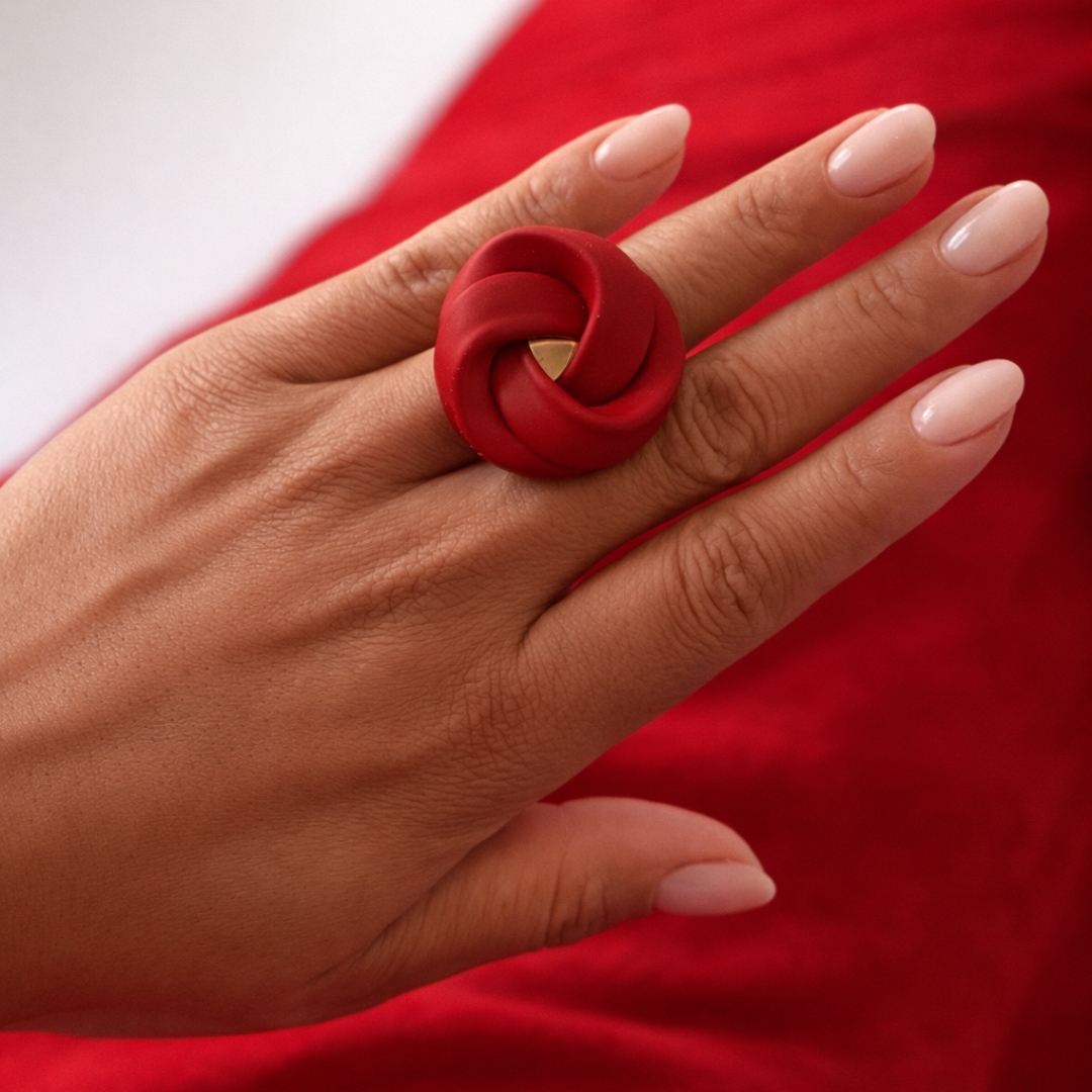 Make a bold and unforgettable statement with this sculptural red resin ring designed for women who love expressive fashion. Its modern twisted design and vibrant red color create a powerful accessory that instantly elevates any outfit.
