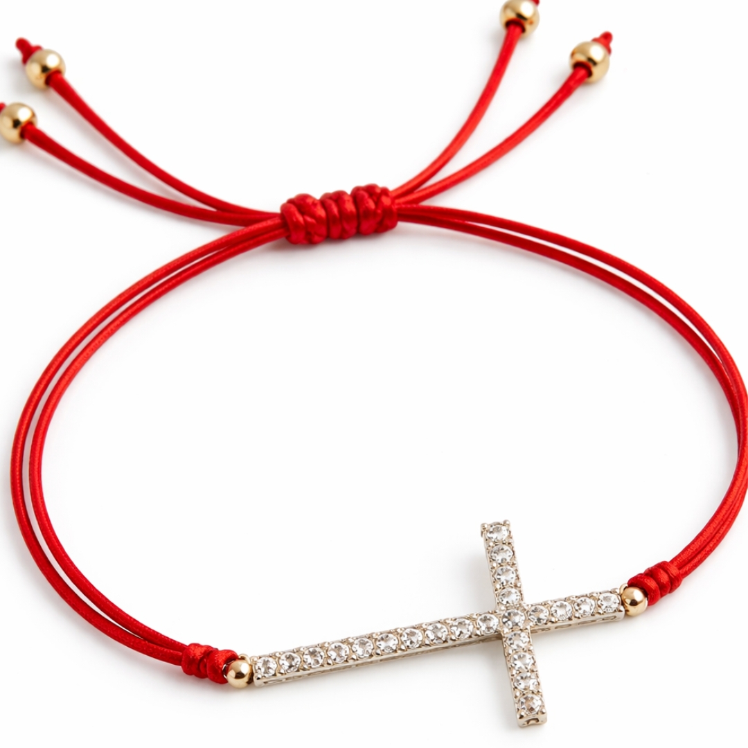 This red bracelet with a sparkling cross is more than just an accessory it’s a reminder that you never walk alone.