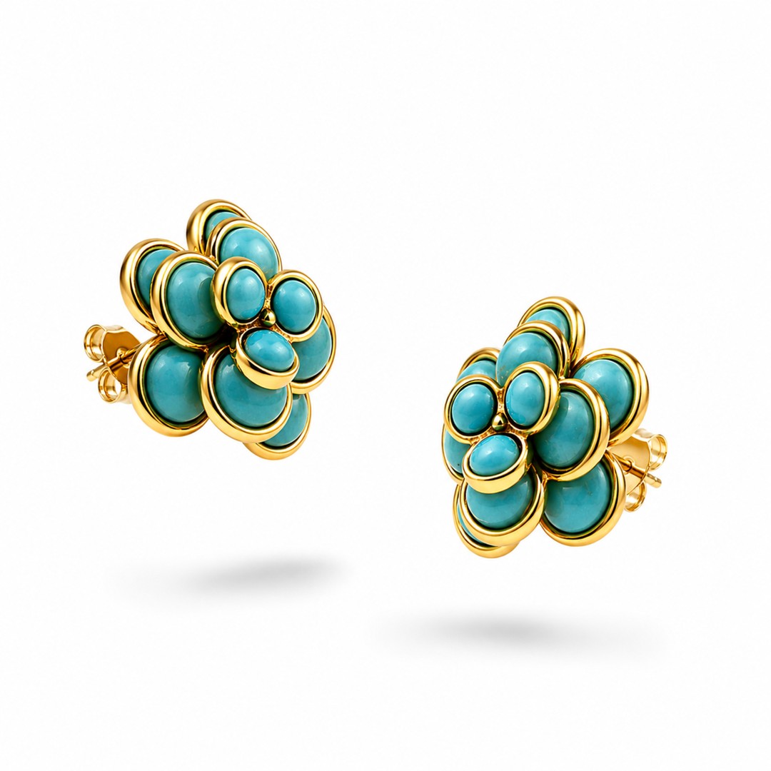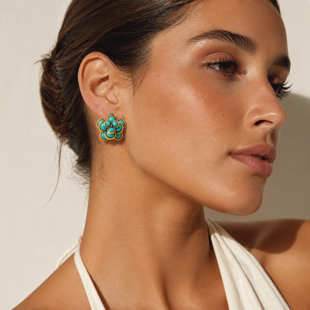 Turquoise Flower Statement Earrings – Bold & Elegant Gold Jewelry